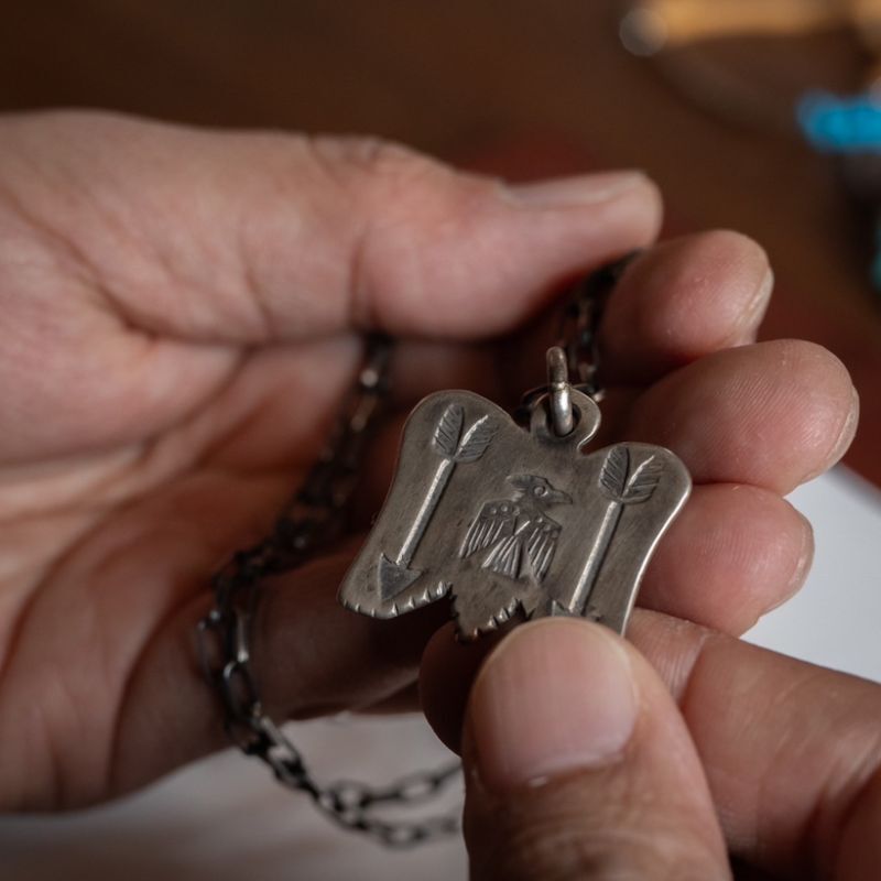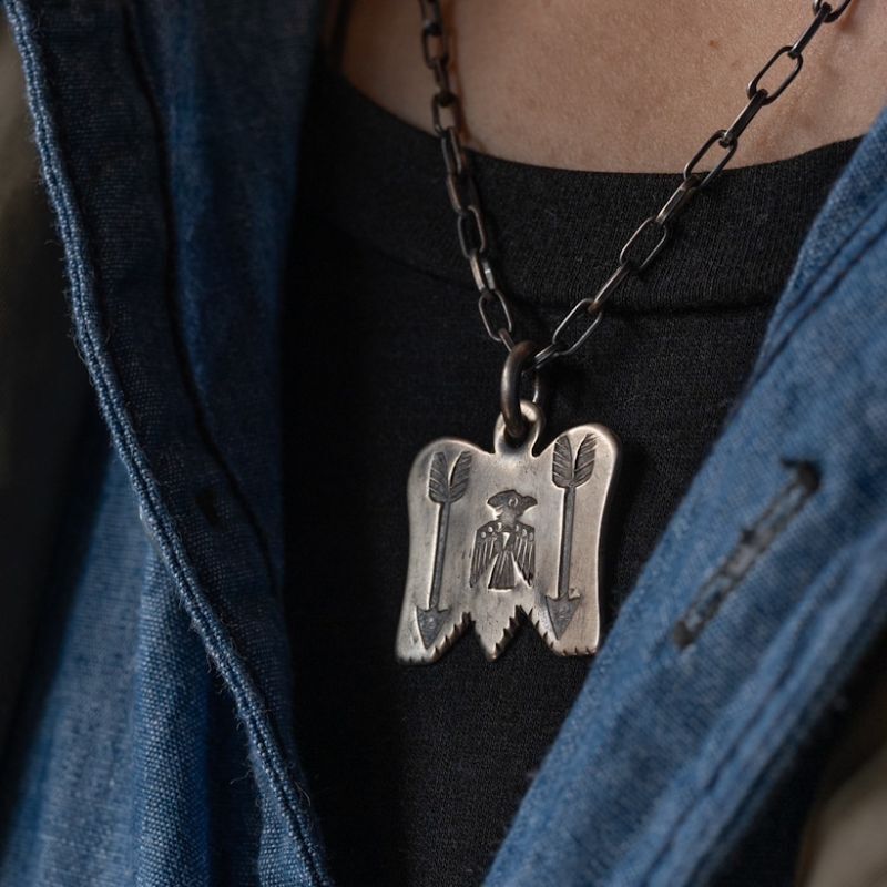 クリーク族 Jesse Robbins サンダーバード コインシルバー スタンプ ペンダント [R34S-273]