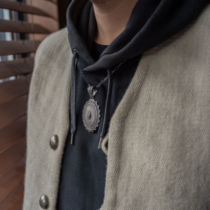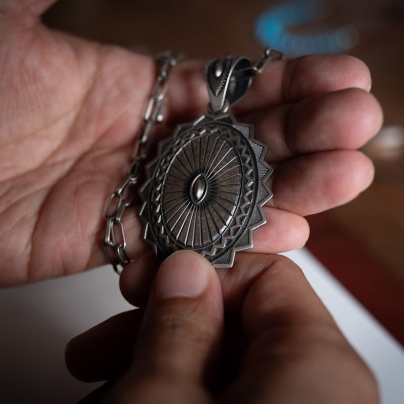 ナバホ族 Jacob D. Morgan サンバースト スタンプ ペンダント [R31-002]