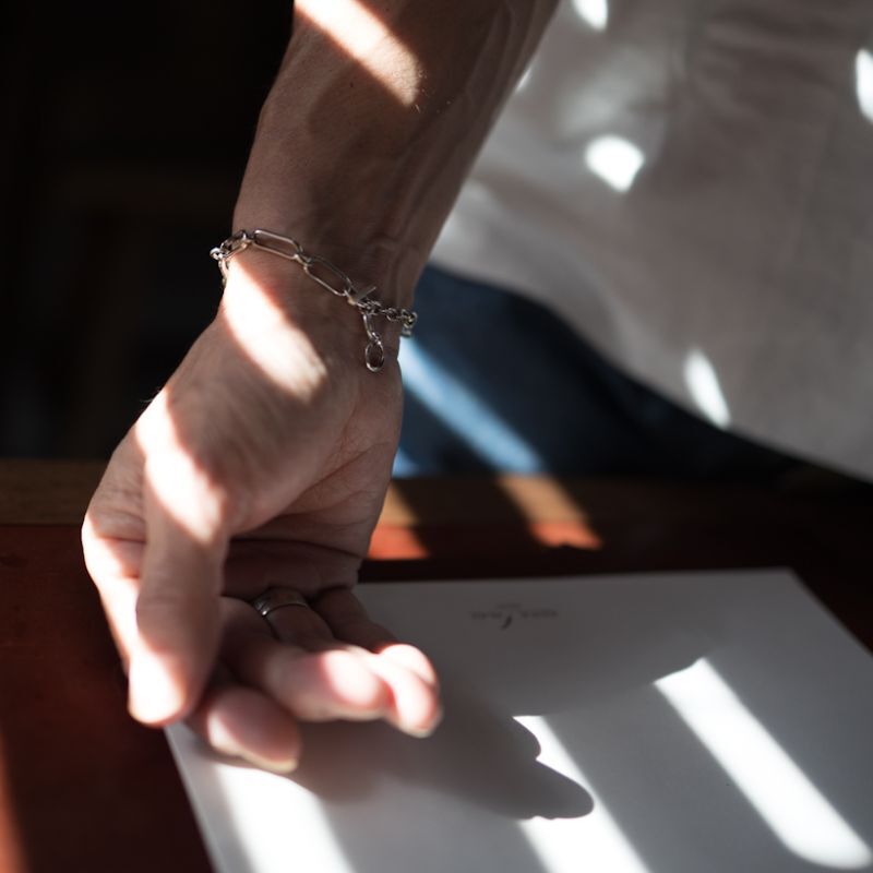 | NAVAJO/ナバホ族のアーティスト Harvey Mace/ハーヴィー・メイスに制作を依頼したブレスレットです。 一つ一つコマを繋ぎ合わせたハンドメイドによる作品、シンプルでクリーンなブレスレットなので、他のアクセサリーなどと相性良くスタイルングを楽しんでいただけるアイテムだと思います。 インディアンジュエリーらしくないところも新鮮ですが、スタイルのは幅を広げてくれるのは間違いないですね。綺麗に磨いてお使いいただくのも良いですが、使い込んでからの経年変化も雰囲気があっておすすめです。 |