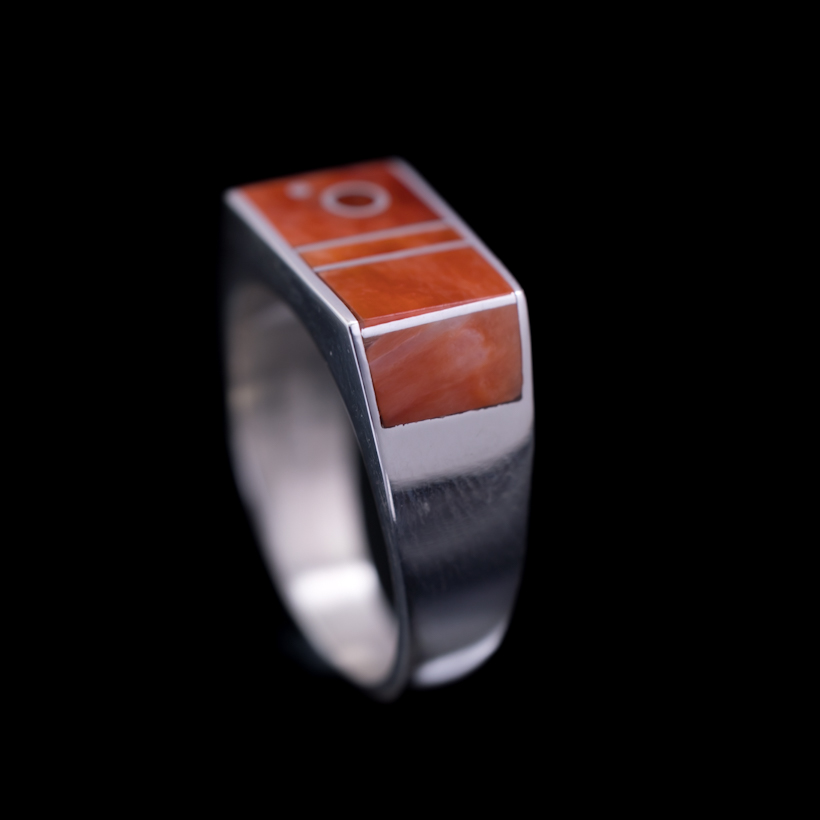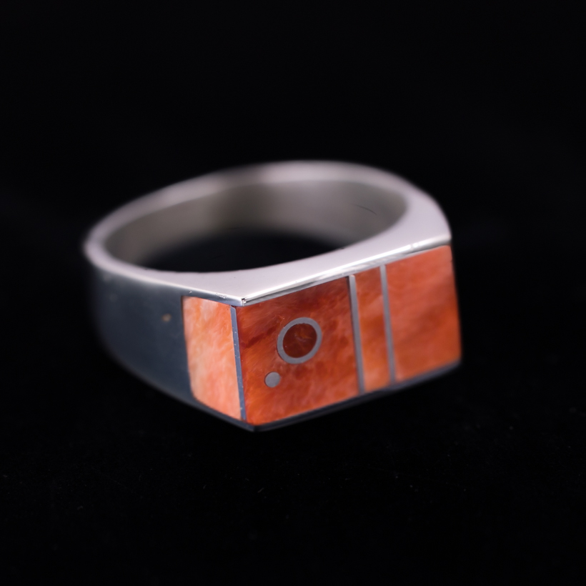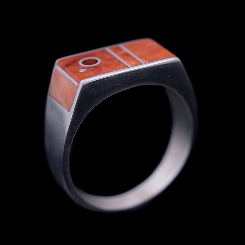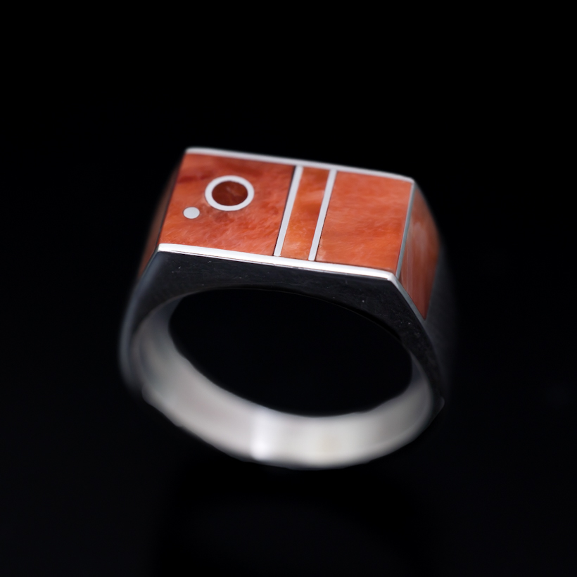 ナバホ族 Veronica Benally スパイニーオイスターシェル/コーラル インレイ リング 12.5号 [R37S-131]