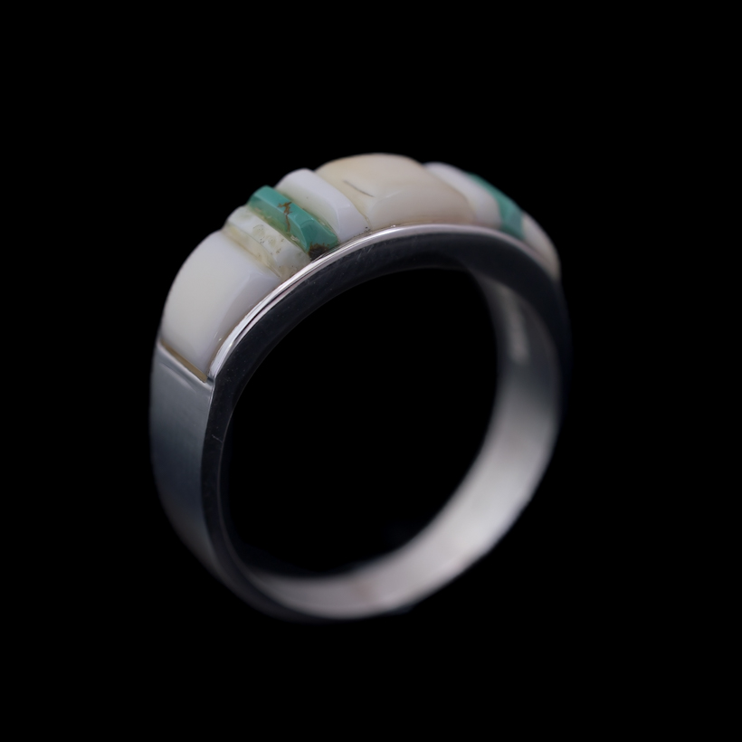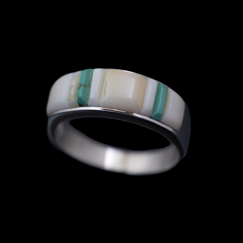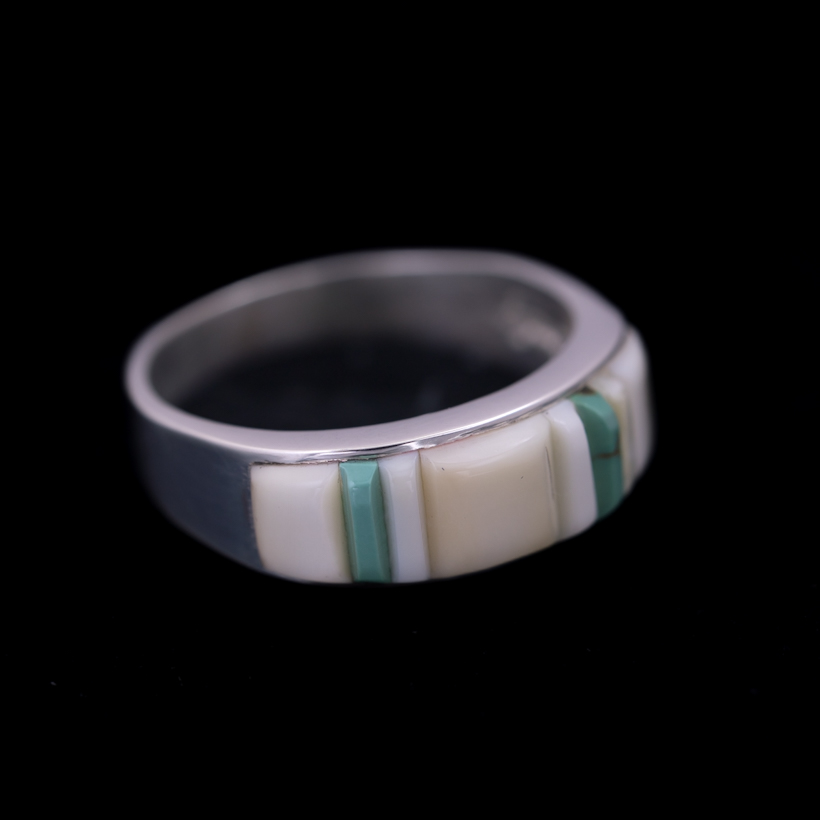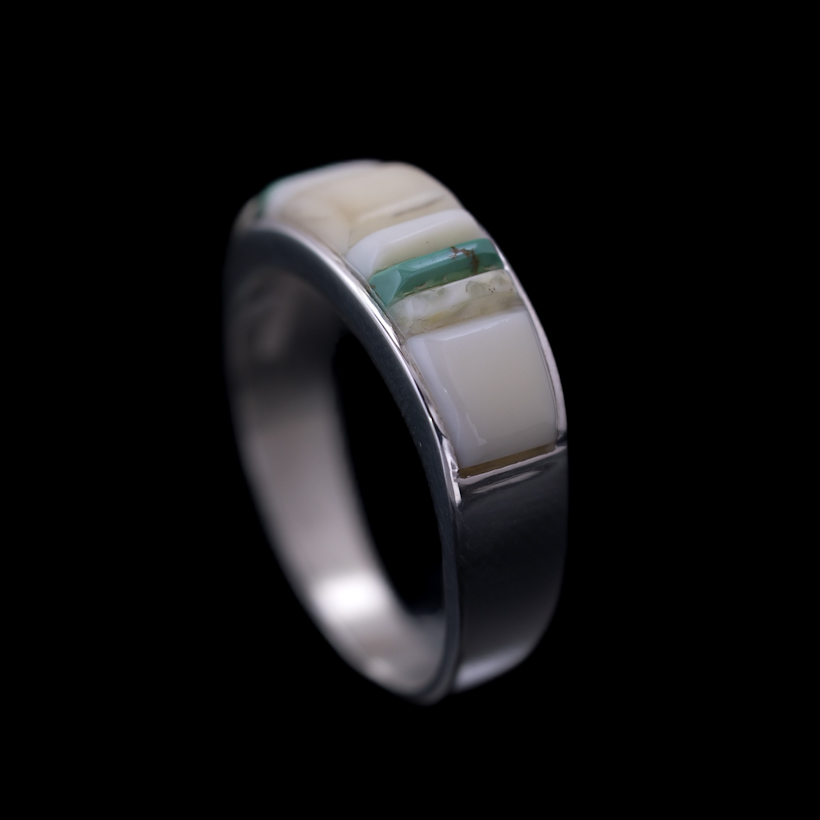 ナバホ族 Veronica Benally コーンロウ アイボリー/ターコイズ インレイ リング 15.5号 [R37S-135]