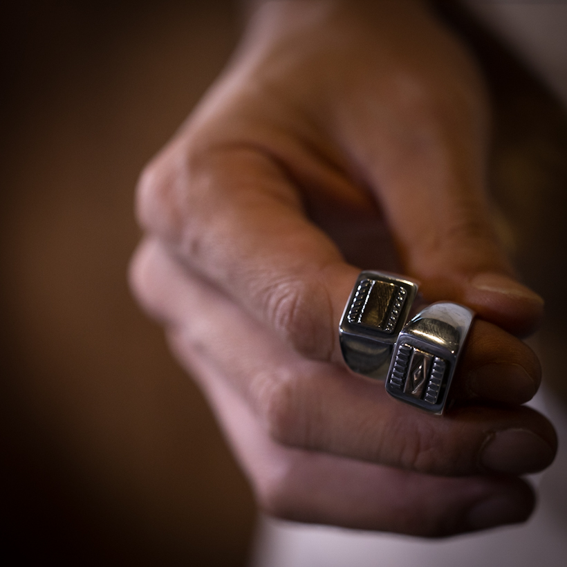 NAVAJO/ナバホ族のアーティスト Bruce Morgan/ブルース・モーガンとのコラボ企画によるリングです。かねてより販売させていただいているRIVER MAILオリジナルのシグネチャー(印台)リングをベースとして、ブルース氏にスクエア型の14Kパーツを制作していただき組み合わせました。特別感のある作品、彼の作品をお持ちの方は安心してスタイリングを楽しんでいただけるのが特徴の一つでもあり、経年変化によるゴールドとシルバーのコントラストがより深みを増していきます。長年の相棒としてぜひお楽しみください。 |