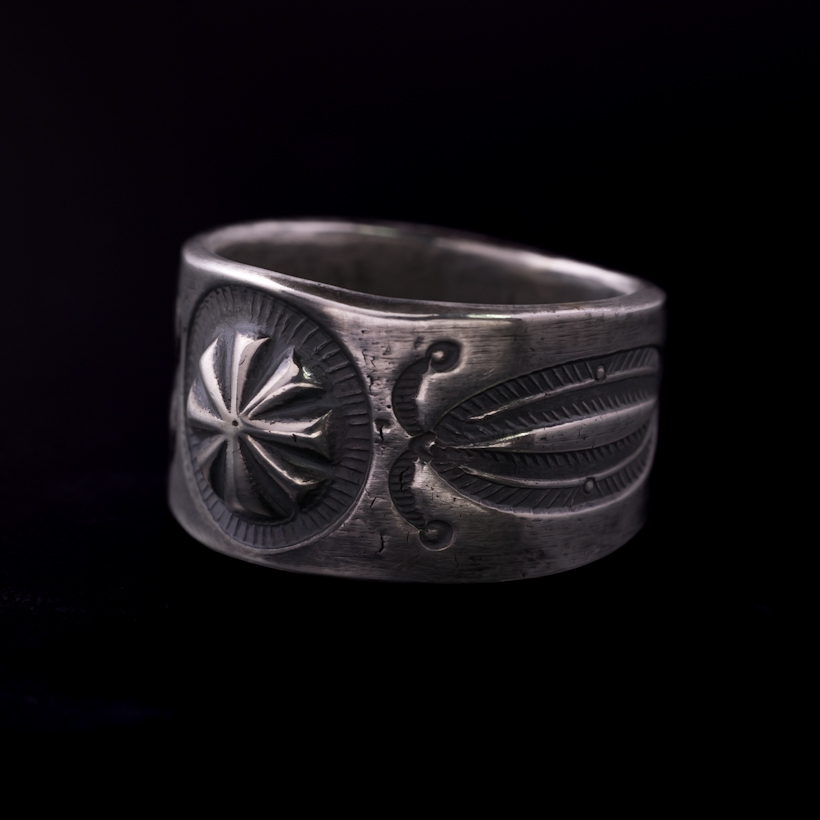 クリーク族 Jesse Robbins コインシルバー エンボスリング 23.5号 [R38S-273]