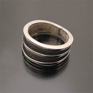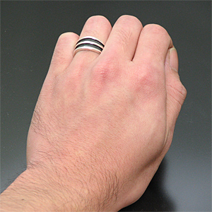 | NAVAJO/ナバホ族のアーティスト Tom Hawk/トム・ホークが制作したリングです。 スタイリングしやすいトム・ホークの作品は非常に人気のあるアイテムで、黒い溝のデザインが特徴です。 厚みのあるシルバーに、落ち着いた印象を与えてくれる黒は、シックな大人の雰囲気を醸し出してくれます。 身に付ける人のスタイルを択ばず、どんな場面にでも適応してくれる能力を兼ね備えたデザインに仕上がっています。 現在は目が悪くなってしまったため、制作はされていません。 今後入荷が難しくなるアーティストです。 | ||