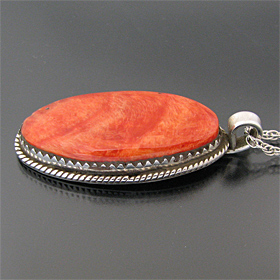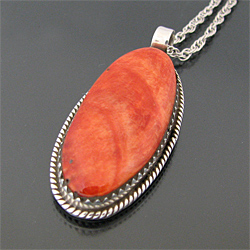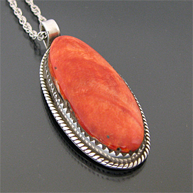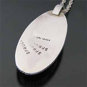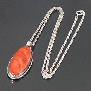 | TAOS/タオスプエブロの有名アーティスト Sonny Spruce/ソニー・スプルースがスパイニーオイスターシェルを用いて制作したネックレスです。 スパイニーオイスターシェルが使用された味わい深いペンダントトップで、石本来の持ち味を存分に引き出したシンプルな仕上がりとなっています! ベーシックなデザインですが、美しいデザインは、スタイルを選ばず、どんな場面でも活躍してくれます。 ソニー氏の住居と店はアドビーハウスで、ジュエリーの他にダンスの名手としても有名です。 | ||