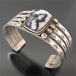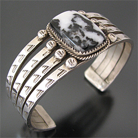 タオス プエブロ Sonny Spruce ホワイトバッファロー スタンプワーク バングル [TB-0010]