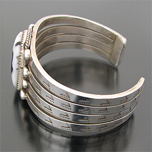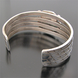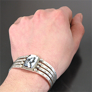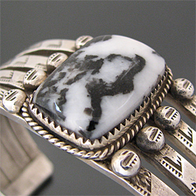 | TAOS/タオス族の有名アーティスト Sonny Spruce/ソニー・スプルースが制作したバングルです。 ホワイトバッファローが使用された味わい深いバングルで、シルバーの土台にはスタンプワークが施されています! ベーシックなデザインですが、美しいデザインは、スタイルを選ばず、どんな場面でも活躍してくれます。 ホワイトバッファローはネイティブアメリカンの間では神の化身とされています! ワイルドで存在感抜群の大きさで、男女問わずスタイリングしやすいお勧めのアイテムです! ソニー氏の住居と店はアドビーハウスで、ジュエリーの他にダンスの名手としても有名です。 ※サイズは多少変更が出来ますのでお気軽にお問い合わせくださいませ。 | ||