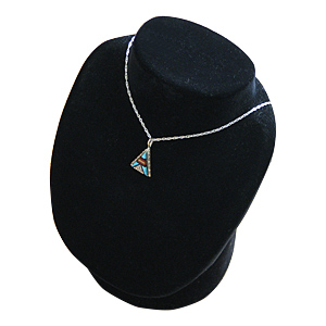 | ZUNI/ズニ族のアーティストがインレイ技法を用いて制作したネックレスです。 カッティングを施した石をはめ込んで図柄を完成させる技法『インレイ』で制作されており、ズニ族ならではの抜群のカラーセンスに繊細さが兼ね備わっています。 胸元をすっきり見せてくれるトライアングル型で、シンプルな作品とは異なり、大胆な色使いが新鮮で、個性を引き出してくれます! 程よい大きさで、胸元を明るく、そして華やかに演出してくれます! | ||