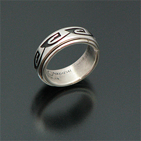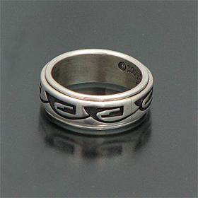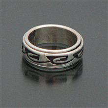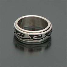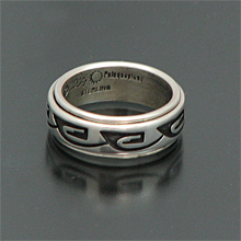 | HOPI/ホピ族の注目の若手アーティスト Alaric Polequaptewa/アーリック・ポリクアプテァワが制作したリングです。 鏡面仕上げの美しいシルバーに、雲がデザインされており、最大の特徴は中心部分が回転するように仕上げられている個性あふれる作品です。 1991年から銀細工を始めた若手のアーティストですが、他のアーティストにはない個性溢れる作品で今後注目のアーティストです! 1997年にはロイ・タラヘフティワ(Roy Talaheftewa)と共同製作をしていました。 | ||