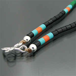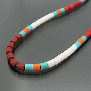 | SANTO DOMINGO/サントドミンゴ族のアーティスト Lupita Calabaza/ルピータ・カラバサがビーズを用いて繋ぎ合せて制作したチョーカーです。 鮮やかで絶妙なカラーリング!上級スタイルを作り出す、斬新なクレイジーパターン デザインのチョーカーです! シンプルなファッションにワンポイント入れるだけでガラリと雰囲気が変わるアイテムです。 細身のタイプですので違和感なくサラッとお使い頂け、これからのシーズンに重宝します。 | ||