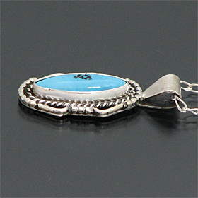| NAVAJO/ナバホ族が制作したネックレスです。 ナバホ族らしいターコイズを大胆に使用した作品で、シルバーの土台にも細工が施されている、シンプルな仕上がりです! 程よい大きさで、見た目を爽やかに、そしてシャープな印象を与えてくれます♪ ネイティブアメリカンにとって神秘の石、また『空の石』と呼ばれているターコイズ。生命にパワーを与えてくれるお守りとして非常に人気の高い石です。 | ||