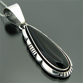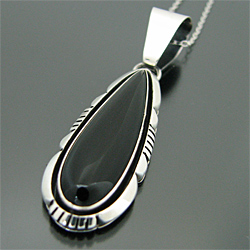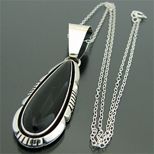 ナバホ族 Lonnie Willie オニキス ティアドロップ ネックレス [RNN-0061]