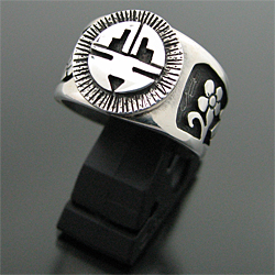 ホピ族 Gerald Lomaventema サンフェイス オーバレイ リング 14.5号 [RHR-0029]