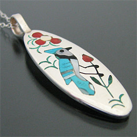 ズニ族 S&E Guardian マルチストーン フラットインレイ ブルージェイ ネックレス [RZN-0058]