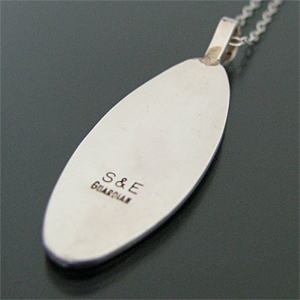 | ZUNI/ズニ族の人気アーティスト Sammy&Esther・GUARDIAN/サミー&イスター・ガーディアンが制作したネックレスです! フラットインレイという技法を用いた作品で、ペンダントの表面は凹凸が無く平面的に仕上がっています。 ブルージェイ(アオカケス)という青色がとても気品のある綺麗な鳥です。和名はアオカケスで、メジャーリーグの球団、トロント・ブルージェイズにもその名が使われています。 とてもフェミニンで女性らしいフラットインレイを得意とする2人の作品は、女性に人気のアイテムで、大切な方へのプレセントにも最適です♪ ティアドロップの女性らしい華やかなデザインに魅了されます♪ | ||