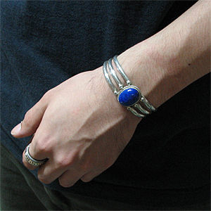 | TAOS/タオスプエブロの有名アーティスト Sonny Spruce/ソニー・スプルースが制作したバングルです。 ソニー・スプルースの真骨頂とも言えるラピスラズリが使用された味わい深いバングルで、シルバーの土台にはスタンプワークが施されています! ベーシックなデザインですが、美しいデザインは、スタイルを選ばず、どんな場面でも活躍してくれます。 ソニー氏の住居と店はアドビーハウスで、ジュエリーの他にダンスの名手としても有名です。 ※サイズは多少変更が出来ますのでお気軽にお問い合わせくださいませ。 | ||
