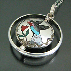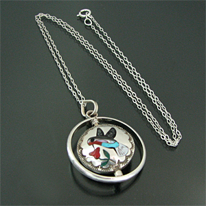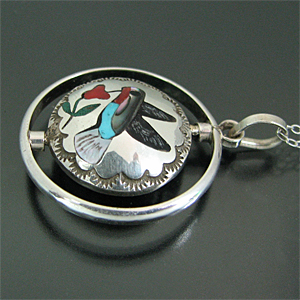 ズニ族 Quinton Quam サークル マルチストーン フラットインレイ ハチドリ リバーシブル ネックレス [RZN-0061]
