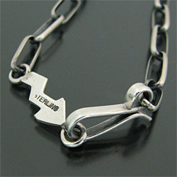 | HOPI/ホピ族の人気アーティスト Gerald Lomaventemaの奥さん、 Yvette Lomaventema/ユビット・ロマベンテマが制作したホピチェーンです。 ハンドメイドで仕上げられており、止め具部分には雷光のチャームが付いています。 ナバホチェーンのように丸みがあり、様々なペンダントトップに合わせる事が出来ます。 また長さの調整が可能になっているので、ペンダントトップの位置を自由に変更でき、他のトップにも使い回しが利きますので非常に便利です。 ※お持ちのペンダントトップのバチカン(チェーンを通す穴)のサイズを確認してください。 | |