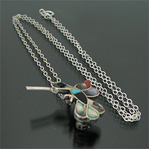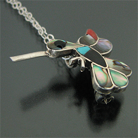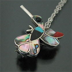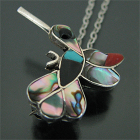ズニ族 ハチドリ マルチストーン チャンネルインレイ ブローチ ネックレス [RZN-0065]