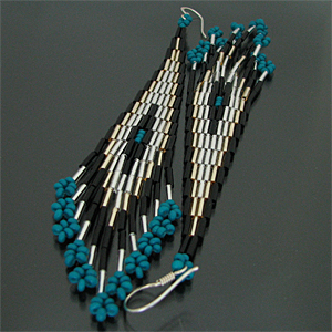 オリジナル ビーズ チマヨ柄 ターコイズブルー 大 ドロップタイプ/アメリカンタイプ ピアス [ROP-0003]