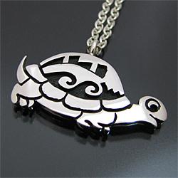 | こちらは賞を獲得しているHOPI/ホピ族の人気アーティスト Wilmer Saufkie Lomayouma/ウィルマー・スフキーが制作したネックレスです。 オーバーレイ技法を用いて、リアルでユニークなタートル(亀)がデザインされています! サイズも着けやすい大きさで、タートルは大地に見立てた甲羅を背負って歩く姿から母なる大地の象徴と云われています。その他に雨をもたらす事と、祖先との絆を結ぶものとしての意味がある。 1990年から制作を開始したウィルマーは、『オーバーレイ』技法を完成させたポール・スフキーの孫、現在も活躍している有名アーティスト『ローレンス・スフキー』の息子になります。 | ||